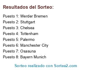 Lista de participantes: Bayern Munich, Manchester City, Stuttgart, Werder Bremen, Osasuna, Chelsea, Tottenham, Palermo.