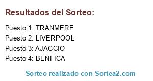 Lista de participantes: AJACCIO, LIVERPOOL, TRANMERE, BENFICA.