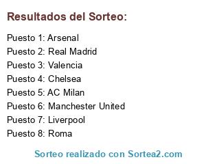 Lista de participantes: Manchester United, Chelsea, Valencia, Arsenal, AC Milan, Liverpool, Roma, Real Madrid.