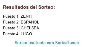 Lista de participantes: ESPAÑOL, CHELSEA, LUGO, ZENIT.