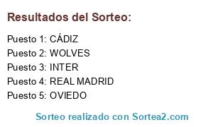 Lista de participantes: INTER, REAL MADRID, CÁDIZ, WOLVES, OVIEDO.