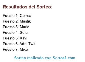 Lista de participantes: Mario, Mustik, Xavi, Sete, Adri_Twit, Correa, Mike.