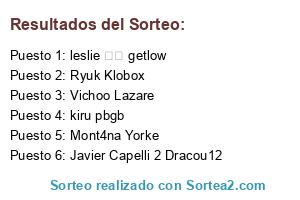 Lista de participantes: leslie 伝説 getlow, Javier Capelli 2 Dracou12, Vichoo Lazare, kiru pbgb, Mont4na Yorke, Ryuk Klobox.