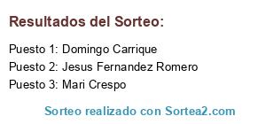 Lista de participantes: Abigail López(-), Alfredo Peralta(-), Alicia Carrero Marcos(5 participaciones), Ana Glez(-), Ana Maria Cruz Perez(-), Ana María González Otero(2 participaciones), Ana Maria Ramos(2 participaciones), Andrea Haro(-), Angela Carpente Garcia(2 participaciones), Antonio Alarcon(8 participaciones), Antonio GN(8 participaciones), Antonio Tribaldos(5 participaciones), Avon Anne(4 participaciones), Ayna Trotamundos(-), Azu Cigales(10 participaciones), Blanca Rodriguez(-), Buscador de Sorteos(-), Carmen Feijoo Alvarez(-), Carmen Garcia Magadan(10 participaciones), Carmen Zapico Zapico, Carolina Adan(4 participaciones), Cecilio Jabalera Rodriguez(4 participaciones), Charo Romero Álvarez(4 participaciones), Chelo Moa(2 participaciones), Chris Hana(6 participaciones), Cipriano Moreno Aparicio(10 participaciones), Concepcion Matias Simarro(-), Consuelo Garcia Fortes(2 participaciones), Cristina Jurado(10 participaciones), Cristina Soria Vilella(-), Domingo Carrique(12 participaciones), Elena Knyazhechenko(10 participaciones), Encarni Estévez(-), Encarni Sanchez Alanis(5 participaciones), Esther Mu?oz Martín(-), Eva Fortu?o(10 participaciones), Eva Mari?o Sánchez(-), Eva Maria Diaz Hidalgo(4 participaciones), Fernando Juceda(2 participaciones), Francisco González(4 participaciones), Gloria Miguelez(-), Isabel Teis Tarinas(10 participaciones), Itzi Ubillos(11 participaciones), Ivan Monzon Garces(-), Jacinto Vela Gomez(0), Javi Salinas(-), Javi Salinasa(-), Javier Artero Soler(2 participaciones), Jennifer Bonilla Pizarro(-), Jennifer Bonilla(5 participaciones), Jennifer Romero(-), Jesus Fernandez Romero(10 participaciones), Jose A. Bayon(7 participaciones), Juan Ignacio Sanchez Alocen(-), Judith Pina Ortega(-), Kapitana Corsaria Pirates(10 participaciones), Katerina Knyazhechenko(10 participaciones), La Quinta Esencia(3 participaciones), Lali Pujala(-), Lara Saiz(0), Lidia Aguilar Gómez(-), Lucia Perez(11 participaciones), Luis Manuel Rubio Alvarez(9 participaciones), Mafertor Torneiro(2 participaciones), Mar Lopez Velasco(3 participaciones), Margarita Soler Garcia(-), Mari Crespo(11 participaciones), Maria Calleja M(5 participaciones), Maria Colomo Diaz(12 participaciones), Maria Jose Martinez Gonzalez(-), Maria Sepulveda(6 participaciones), Maribeco Cp(16 participaciones), Marina Bel(-), Marta Montero Toro(5 participaciones), Marta Morales López(-), Matilde Ojeda Martinez(-), Mercedes Soler(14 participaciones), Mireia Lorenzo Jimenez(5 participaciones), Miren K Hernandez(11 participaciones), Mónica Herrerías(4 participaciones), Montserrat Garcia Garcia(-), Nagore Arostegui Rojo(5 participaciones), Noelia Laredo Expósito(11 participaciones), Núria Garcia(7 participaciones), Nuria Perez Ortega(2 participaciones), Patricia Blanco Valdés(-), Patricia Villaca?as(-), Pepi Romero Alvarez, Rakel Chivelibmw(-), Raquel Bueno(-), Raquel Fortuny(7 participaciones), Raquel Garcia(11 participaciones), Rmaria Camacho(-), Rosi Jabalera(10 participaciones), Sandra Alhaja Ontiveros(-), Sandra Martinez(-), Sandra Toledano(-), Sara Spf(-), Sergio Arnaiz Delgado(-), Sofia Esther Ruiz Garcia(10 participaciones), Sonia Garate Embid(4 participaciones), Tu Estilo Lencería Fina(3 participaciones), Valesoyes Oo(-), Veronica Gomez(4 participaciones), Veronica Sumillera(4 participaciones), Yaiza Vegas(9 participaciones), Zulema Pontes Vidal(5 participaciones).