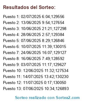 - 2025-07-16 12:51:47 (GMT): Se ejecuta el sorteo
