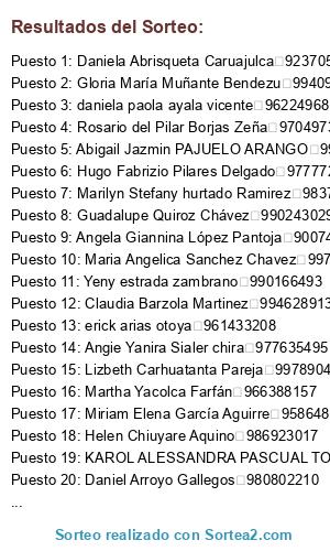 - Puesto 39: Marleni Ramirez Ajalcriña 971031761