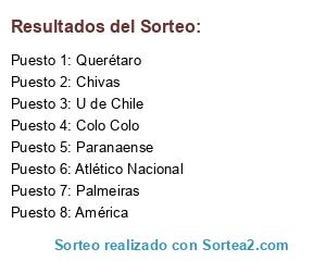 Lista de participantes: Palmeiras, Querétaro, U de Chile, América, Chivas, Colo Colo, Paranaense, Atlético Nacional.