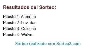 Lista de participantes: Albertito, Colocho, Leviatan, Wolve.