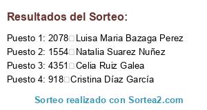 - Puesto 1: 2078 Luisa Maria Bazaga Perez