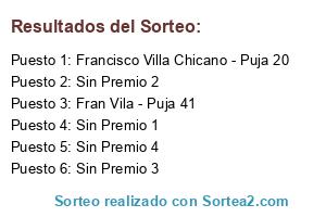 Lista de participantes: Francisco Villa Chicano - Puja 20, Fran Vila - Puja 41, Sin Premio 1, Sin Premio 2, Sin Premio 3, Sin Premio 4.