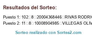 Resultados del sorteo: