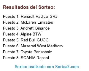 Lista de participantes: Renault Radical SR3, SCANIA Repsol, McLaren Emirates, Maserati West Marlboro, Red Bull GUCCI, Toyota Panasonic, Andretti Binance, Alpine BTW.