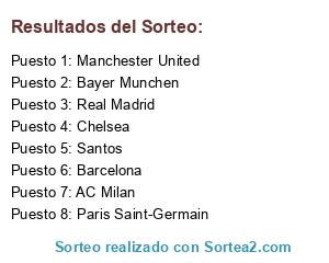 Lista de participantes: Barcelona, Real Madrid , Chelsea , Manchester United, Bayer Munchen , Santos , AC Milan , Paris Saint-Germain.