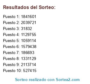 Resultados del sorteo: