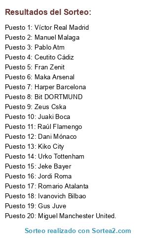 Lista de participantes: Ac. Milán, Zenit, Lazio, Real Madrid, Atlético de Madrid, FC. Barcelona, AJAX, Roma, Bayer Munich, M. City, Atalanta, Bvb, Flamengo, Real Sociedad, Juventus, Boca Juniors, Arsenal, Mónaco, Tottenham, At. Bilbao.