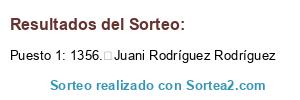 Este sorteo ha sido certificado por Sortea2. Sortea2 garantiza que: