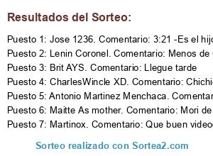 Lista de participantes: Sorteo realizado entre 1720 comentarios..