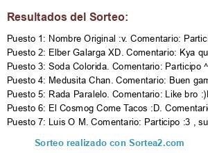 - Ganador 1: Nombre Original :v. Comentario: Participo, ojala tenga suerte, jsjsjs, espero que todo este bien por tu zona c: