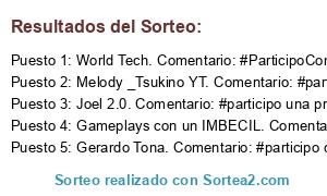 - Ganador 5: Gerardo Tona. Comentario: #participo como harás el sorteo