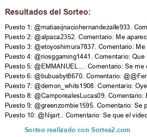 Lista de participantes: Sorteo realizado entre 216 comentarios..