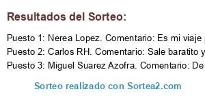 - Ganador 1: Nerea Lopez. Comentario: Es mi viaje pendiente espero que este año que viene pueda hacerlo