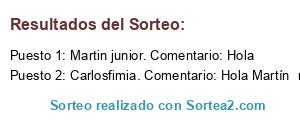 - Ganador 2: Carlosfimia. Comentario: Hola Martín nos vemos mañana lunes