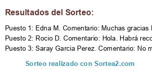 Lista de participantes: Sorteo realizado entre 60 comentarios..