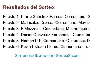 - Suplente 1: Matriculas Drones. Comentario: Muy buenos consejos! Nos gustaría ganar este dron para mejorar la calidad de nuestras grabaciones aéreas