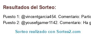 - Suplente: @yousefgamer1142. Comentario: Ha ganar