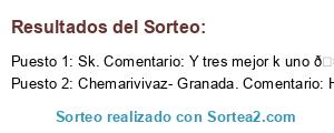 Lista de participantes: Sorteo realizado entre 89 comentarios..