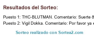- Ganador: THC-BLUTMAN. Comentario: Suerte 🍀🍀 a tod@s amigos pero es para mi