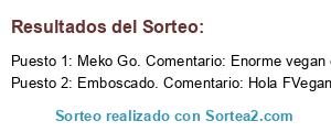- Ganador: Meko Go. Comentario: Enorme vegan como siempre. Está claro que la dieta es la mejor medicina. A ver si hay suerte y me toca el bono. Suerte a todos!