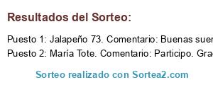 - Ganador: Jalapeño 73. Comentario: Buenas suerte a todos espero ganar Xd 😅