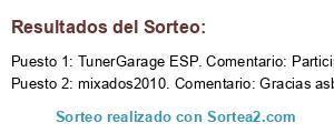 - Ganador: TunerGarage ESP. Comentario: Participooo mucha suerte a tod@s haber si esta vez toca jejjee 😆🙌💪❤️