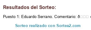 - Ganador: Eduardo Serrano. Comentario: 👍 excelente Javier !!!!