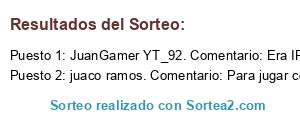 - Ganador 2: juaco ramos. Comentario: Para jugar con tigo es en Android o ps4
