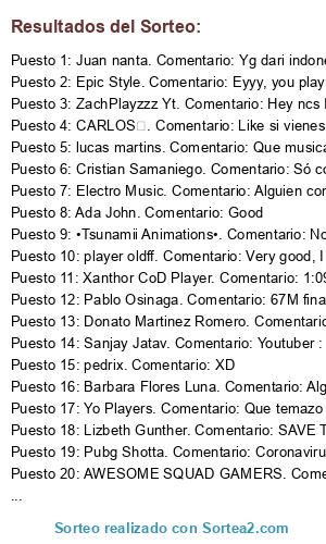 Lista de participantes: Sorteo realizado entre 10389 comentarios..