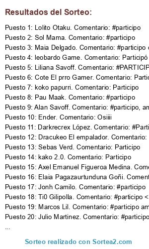 - Ganador 11: Darkrecrex López. Comentario: #Participo suerte a todos os qjiero