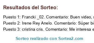 - Ganador 3: cristina cris. Comentario: Me interesa ese pase, buen video :)