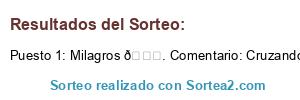 - Ganador: Katia Sánchez. Comentario: Suscrita y seguir viendo todas las novedades de esta hermosa página