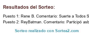 Lista de participantes: Sorteo realizado entre 1383 comentarios..