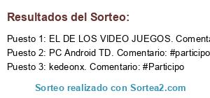 Lista de participantes: Sorteo realizado entre 5 comentarios..