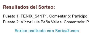 Lista de participantes: Sorteo realizado entre 357 comentarios..