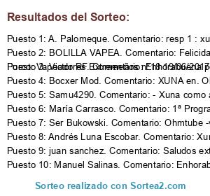 Lista de participantes: Sorteo realizado entre 47 comentarios..