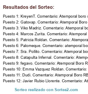 Lista de participantes: Sorteo realizado entre 12 comentarios..