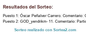Lista de participantes: Sorteo realizado entre 122 comentarios..