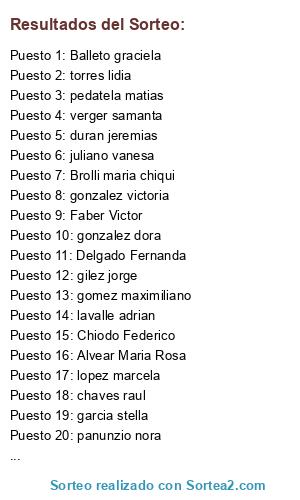 Resultados del sorteo: