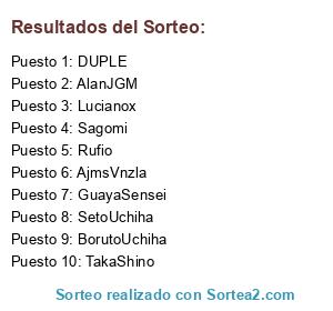 Lista de participantes: Sagomi(3), TakaShino(3), AjmsVnzla(3), hanabi(3), Radamanthis(3), DUPLE(3), Daizuky(2), pepeross(2), Rufio(3), LDBM(1), BorutoUchiha(1), AlanJGM(7), rias(1), TheGaudy(2), SetoUchiha(1), Lucianox(5), GuayaSensei(1).