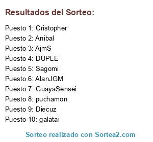 Lista de participantes: Sagomi(17), SetoUchiha(8), GenmaYagyuu(8), AlanJGM(8), Anibal(12), TobiSenju(6), ByokoChiba(14), galatai(16), Diecuz(8), IrukaDate(10), Cristopher(8), DUPLE(7), KenshiYazuki(6), Otsusuki(6), KEVIN(7), oscar(19), Jusuork(12), AjmS(17), FumandoPorro(5), URIEL205(6), Sofi(6), JesusUchia(6), puchamon(16), elmejor(16), GuayaSensei(11), ShiroTashiro(4), Espartaco(5), SuiroUchiha(10), LUCIAN(10), KaguraUzuki(5), SakuHyuga(4), Amoxilina(8), marcelokiba(9), NarutoAkazawa(14), leviatan(6).