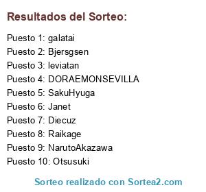 Lista de participantes: Sagomi(17), DORAEMONSEVILLA(9), Bjersgsen(15), Anibal(14), TobiSenju(6), leviatan(8), S89-NotDark(6), Diecuz(13), NarutoAkazawa(8), BryanUchiha(12), Raikage(6), KenshiYazuki(6), Janet(10), puchamon(5), juanpro(6), Otsusuki(3), galatai(5), SakuHyuga(11), Cristopher(11), AjmS(9), GuayaSensei(8), elmejor(5), Espartaco(8).